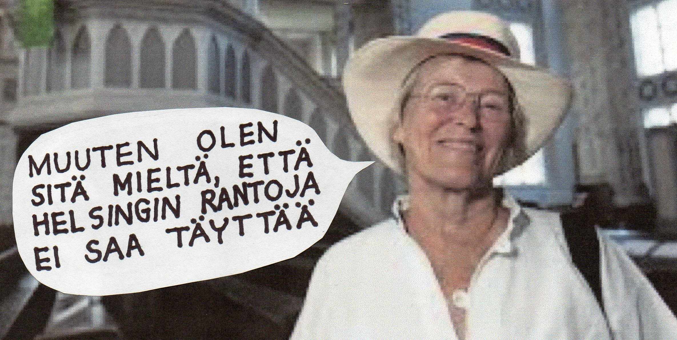 Don Quijoteissa löytyy daameissakin. Kuten aina ihanasti hymyilevä Kaija Santaholma, jonka kanssa olin yhdessä perustamassa Stadin rantaryhmää. Hän jaksaa paasata Helsingin rantojen luontoarvojen puolesta ja kaupungin ylimitoitettuja kasvutavoitteita vastaan sekä Hesarissa että kaupunkiseminaarien vakioesiintyjänä. Toisten mielestä ihan vaivoiksi asti. Eiväthän kaikki tästä tykkää vaikka Kaija on aivan oikeassa. Turhautuneena hänkin erosi liitosta, mutta vasta eläkkeellä ollessaan. Kaija on tehnyt hienon uran Ympäristöministeriössä, mutta hänellä ei ole mainittavaa menestystä uudisrakennusten suunnittelijana. Ainoa asia mitä arkkitehdit arvostavat. Vain maestroja kuunnellaan. Muut ovat enemmän tai vähemmän hölmöjä.