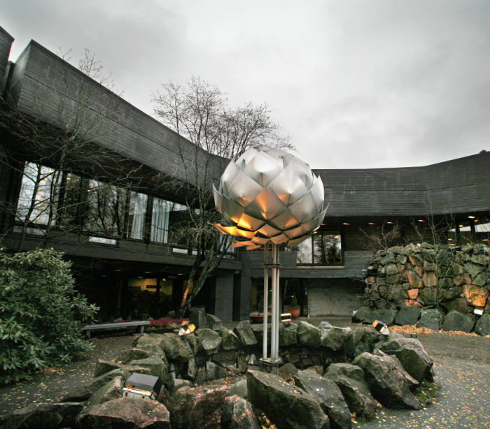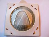 Toisella puolella on Eeron kuuluisin huonekalu tulppaani-tuoli ja toisella puolella amerikkalainen ikoni – presidentti Thomas Jefferssonin muistokaari Gateway Arch. Tämä valtava monumentti valmistui St. Lousiin Missouriin vuosi Eeron kuoleman jälkeen.