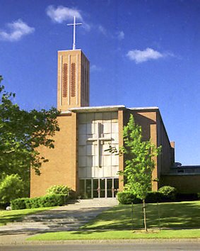 Perhe Saarinen muutti Amerikkaan 1923 töiden vähennyttyä Suomessa. Pappa sai kuuluisuutta mm. toisella palkinnollaan Chigago Tribune pilvenpiirtäjän kilpailussa ja Granbrookin taideakatemian suunnittelijana ja opettajana. Muiden töiden ohessa valmistui oheinen tabernaakkelikirkko First Christian Church vuonna 1942. Paikka on Columbus Indianassa. Kuvat vasemmalla ja alla.