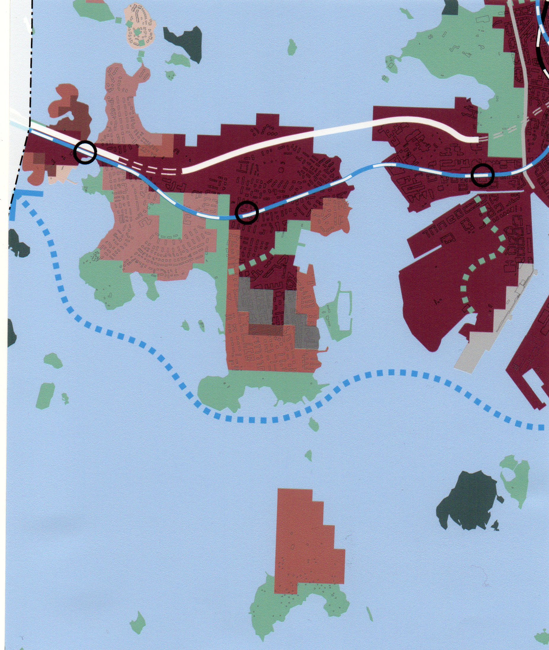 Yleiskaavan mankäyttö on piirretty kartalle hehtaarin pikseleinä. Alueen pääkäyttö on esitetty eri värein. Mitä tummempi väri sitä tiiviimpää rakentamista. Kartta on tulkinnanvarainen ja vähän vaikeaselkoinenkin. Merkittävä seikka, koska tämä on ainoa asiakirja yleiskaavan suuresta aineistosta, joka vahvistuu ohjeeksi tulevalle asemakaavoitukselle. Tältä kartta näyttää Lauttasaaren ympäristön osalta.