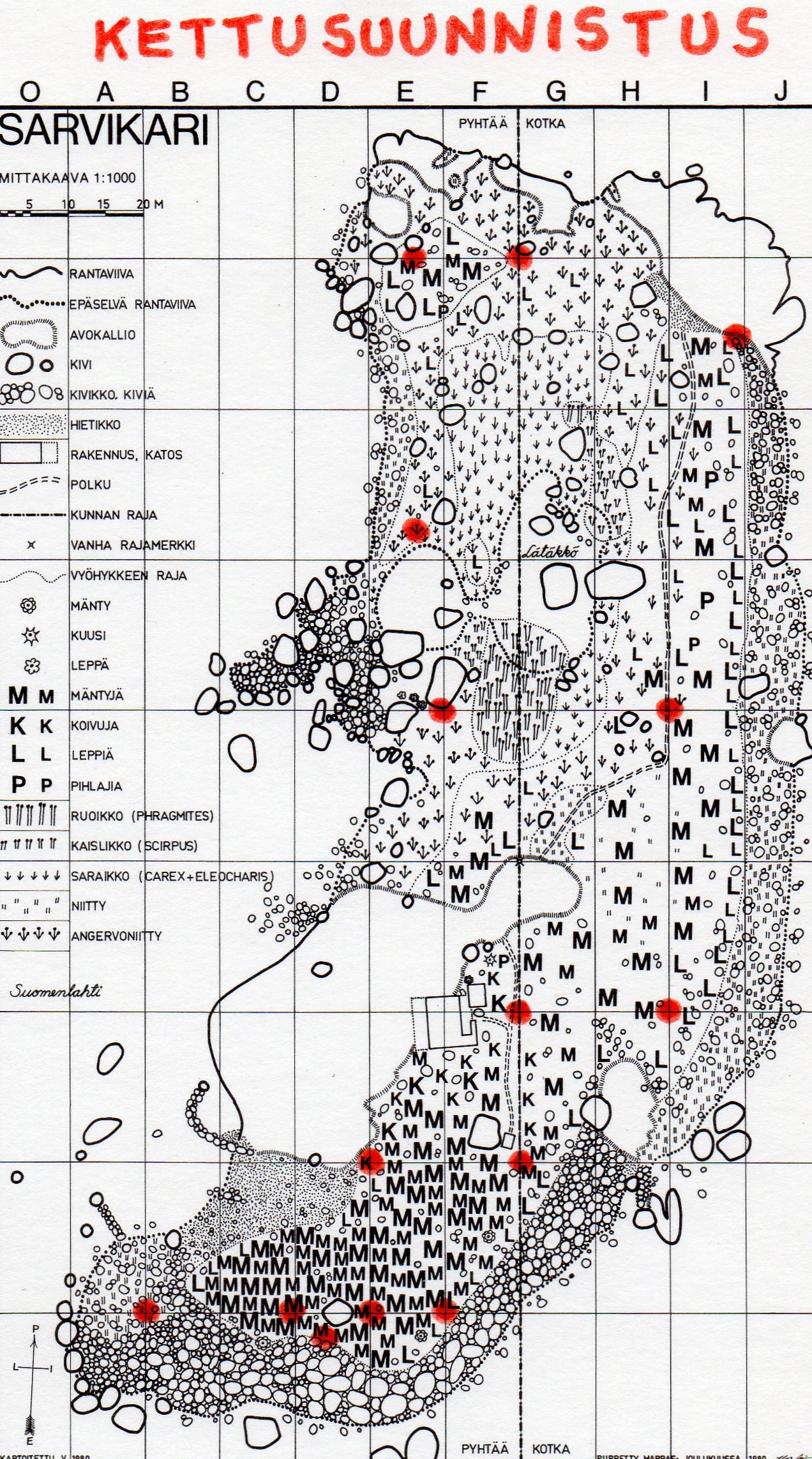 Tiesin että edessä olisi heti kohta väyläni poikki menevä paksulla teräsvaijerilla rantaan kiinnitetty suuri nuotta. Kiersin sen varmuuden vuoksi hyvin kaukaa, koska mitään nuottamerkkejä tai lippuja en nähnyt. Onneksi sentään selän toisella puolella olevien tuttujen saarien ääriviivat erottuivat jotenkuten. Ajoin melko reippaasti pienellä plaanilla veden roiskuessa kaikkialla. Ehkä selviäisin kuitenkin tästä etapista. Mutta miten mahtaa käydä ahtaalla karikkoisella sisäväylällä. Siellä vihreät ja punaiset viitat odottavat tuhkatiheässä kuin pujottelurinteessä ja minä en näe niitä kuin vasta muutaman metrin päästä.