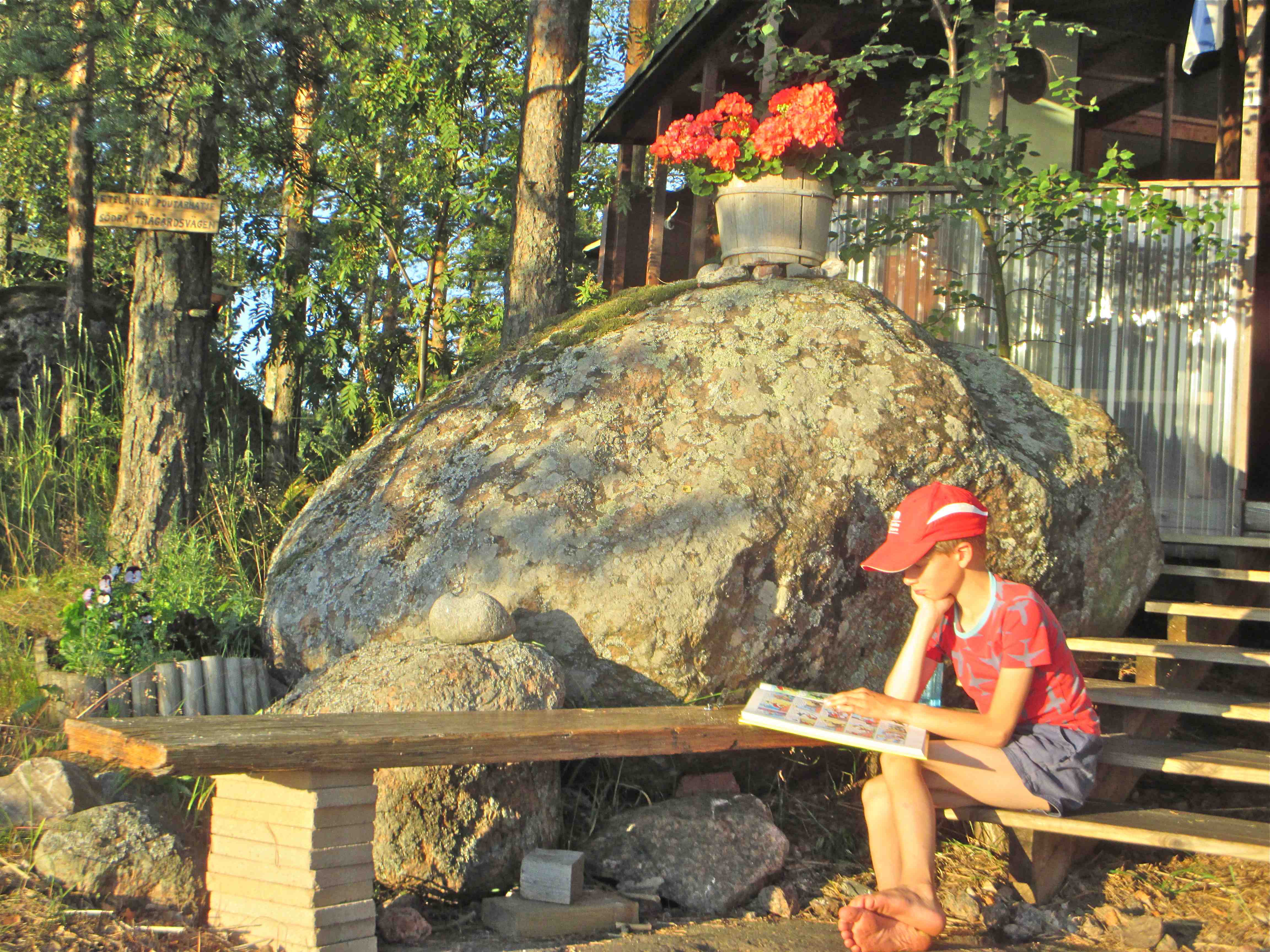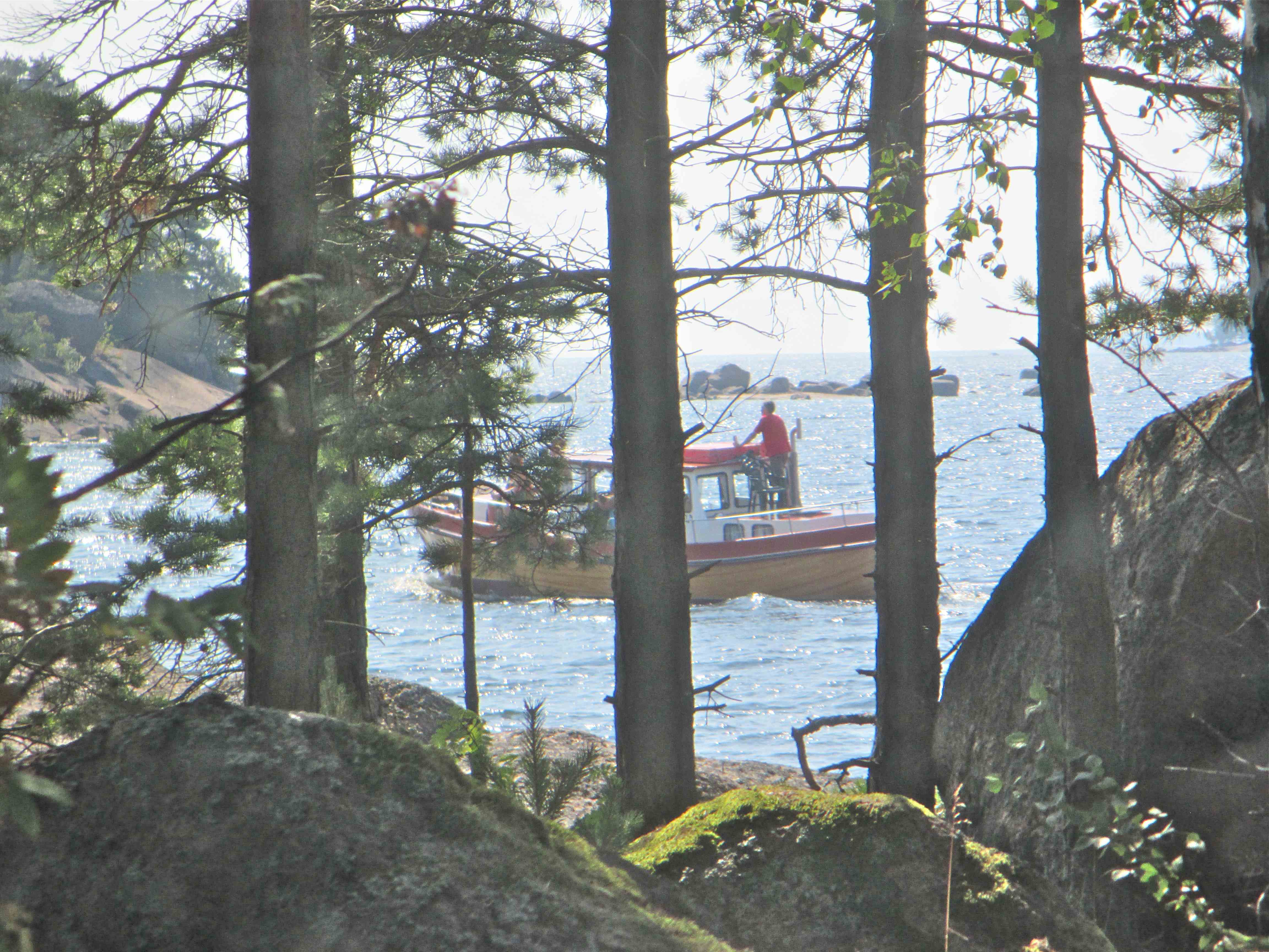 Mieli oli korkealla ja maisemat upeita. Posottelin hyvää vauhtia kapealla ja karikkoisella sisäväylällä. Veneen kokka pujotteli lukuisten vihreiden ja punaisten viittojen välistä. Tuttua väylää reunustivat ylivuotiset kultaiset ruovikkokedot, joita hopeiset kyhmyjoutsenet kauneuspilkuttivat. Meri ja veneilijä kimmelsivät parhainta hymyään.