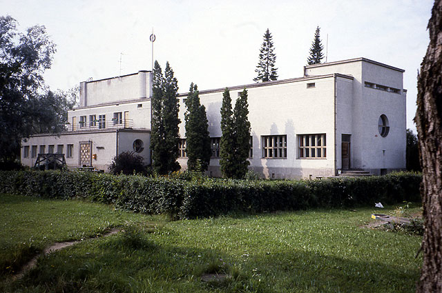 Lähikuva Kirstin ja Askon voittaneesta ehdotuksesta. Todella hieno kilpailutyö ja poikkeus viimeaikaisista palkintolinjasta. Tässähän ei ole mitää muodinmukaisia hömpsötyksiä eikä tasakattoja vaan vanhan ajan hienoa rehtiä yksinkertaista arkkitehtuuria. Bravo! Tulee hieno asuntomessualue. Takana Olavi Sortan suunnittelema pioneerikoulu vuodelta 1936 (”Valkoinen Helvetti”).