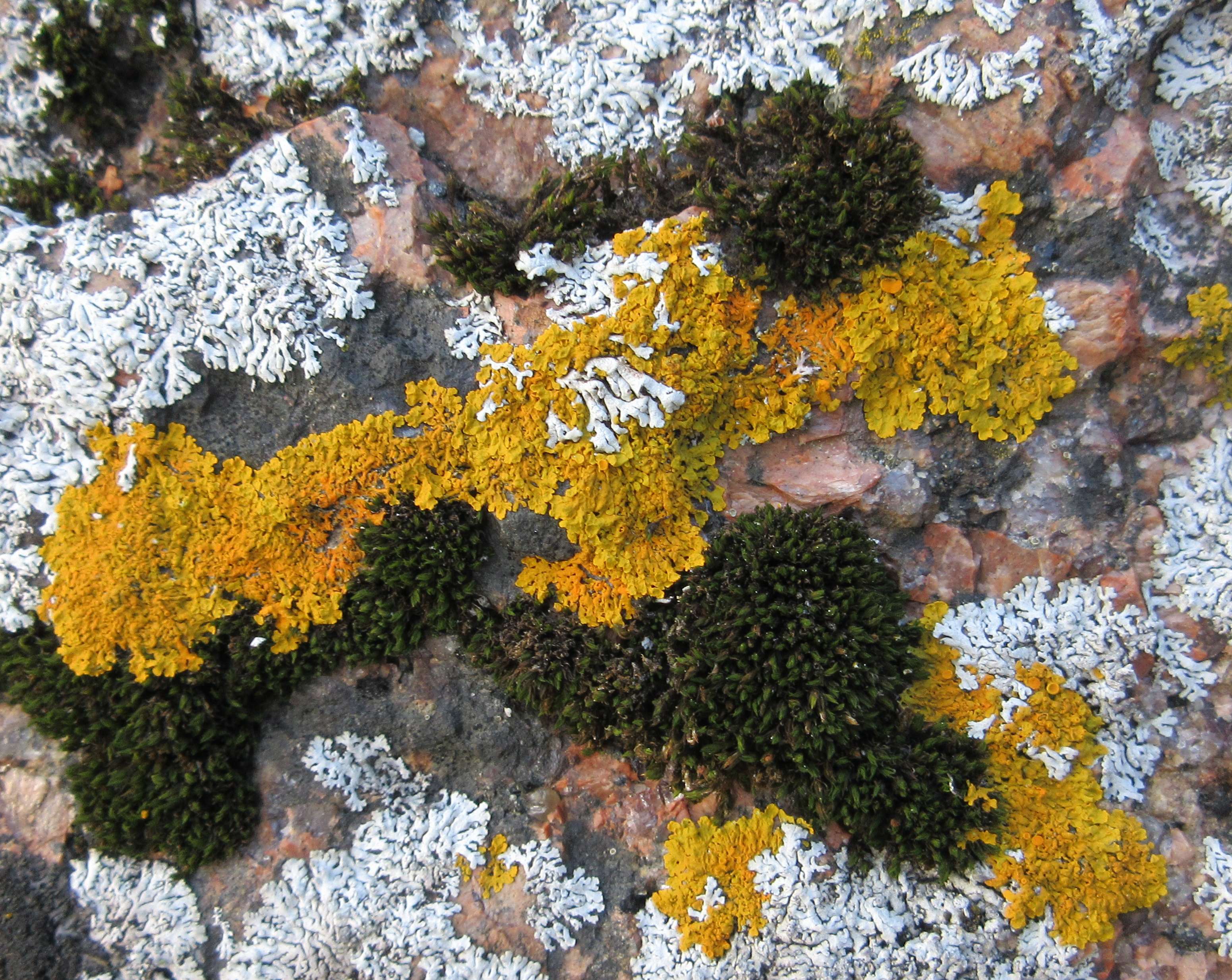 Appiukko on rauhoittamallaan saarellamme kartoittanut putkilokasvit. Puut, pensaat, ruohot ja muut putkivartiset. Lajeja löytyy 126. Sammaleet ja jäkälät jäivät tutkimuksen ulkopuolelle. Nyt on jäkälien aika päästä estradille. Vihdoinkin! Seuraavat valokuvat eivät ole manipuloituja. Tervetuloa taidenäyttelyyn! Käykää peremmälle, olkaa hyvä!