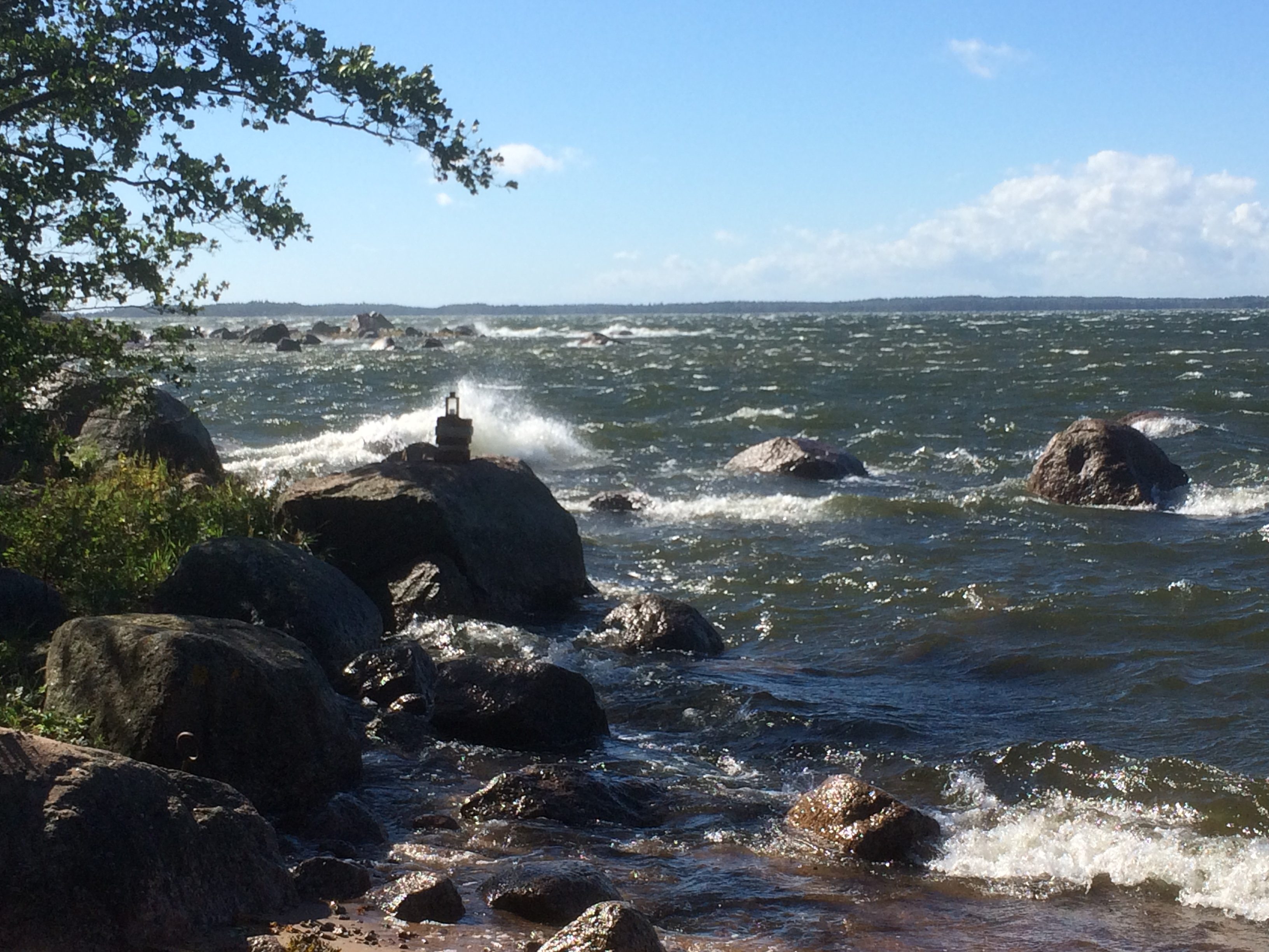 Vajaan hehtaarin kokoinen saari on pieneltä osalta paljasta kalliota ja muualla kallion päällä on muutaman kymmenen sentin paksuinen tiivis hiekansekainen juurien täyttämä maaseos. Oivallinen rakennuspohja, koska se ei roudi. Mutta ei sovellu puutarhakäyttöön. Paitsi meren tuomat ruovikkovallit saaren sisällä, joissa kasvatamme perunaa kuten olen aikaisemmassa blogissani ( Huvila meren saarella 19) kertonut. Ja satoa tuli.