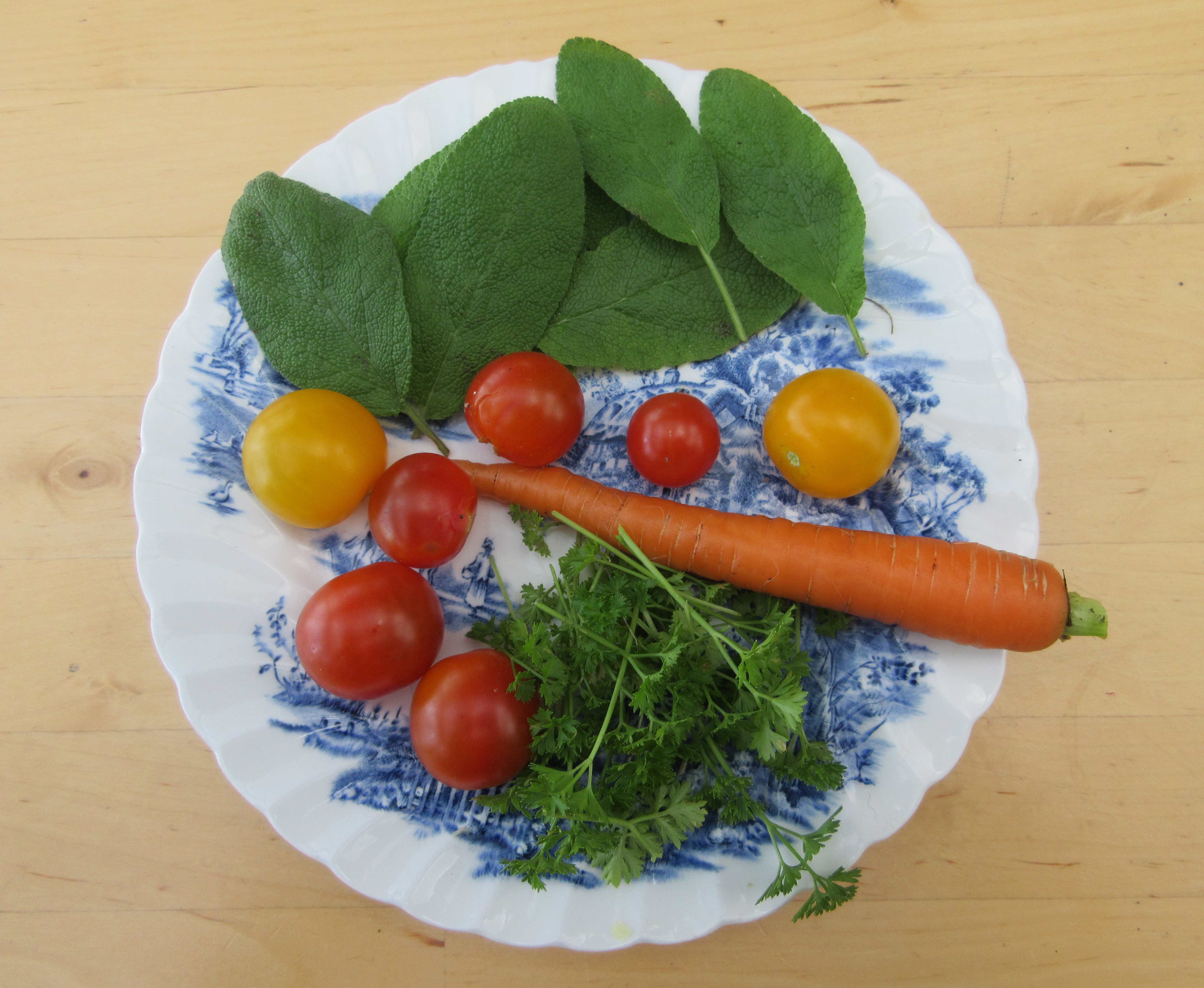 Terassoidussa yrttitarha-lipastossa on siemenestä kasvatettua porkkanaa, mansikkaa, kolmea lajia minttua, kurkkuyrttiä ja rosmariinia. Saarella kasvatetaan myös salaattia, persiljaa, timjamia, iisoppia, lipstikkaa, laventelia ja ruohosipulia, jota on myös villinä.