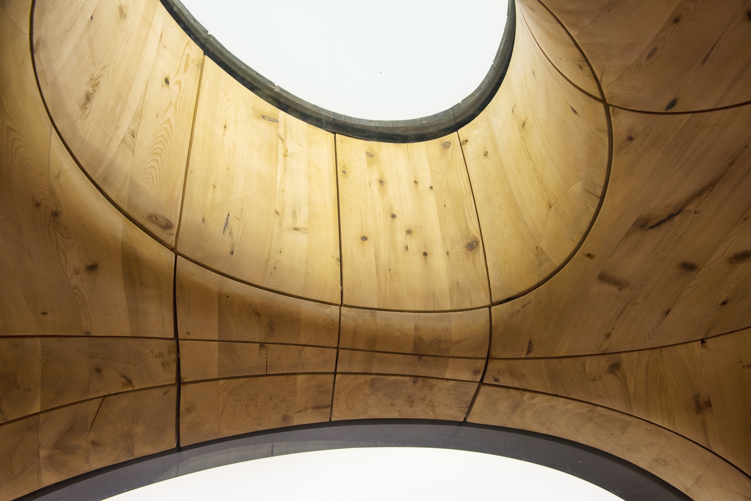 Edellisestä kuvasta tulee heti mieleen Lars Sonckin Tampereen tuomiokirkon keskusholvi. Ajallista eroa on runsaat 110 vuotta. Kansallisromantiikka on tullut takaisin modernimmassa muodossa.