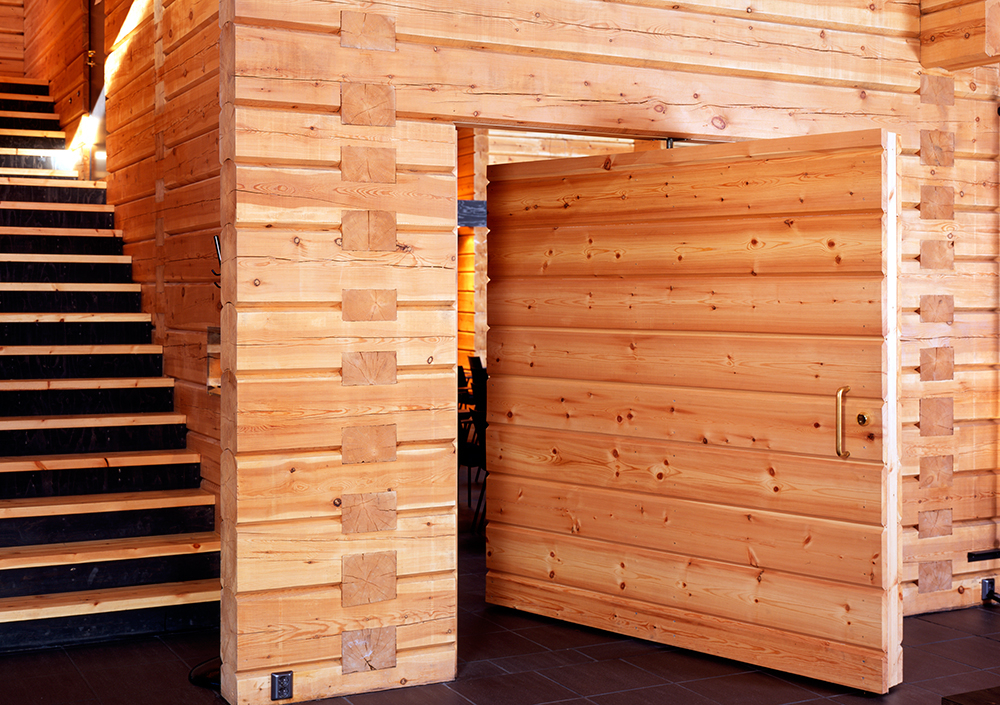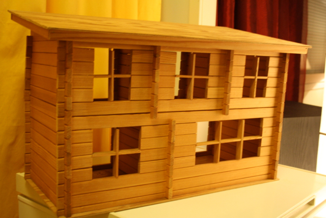 Kierikkikekus. Sisäkuvasta huomaa, että ainakin tässä on käytetty vielä vanhaa viime vuosituhannen tekniikkaa – yhdestä puusta tehtyä massiivihirttä. Tämän jälkeen hirsitekniikka on mennyt harppauksin eteenpäin.