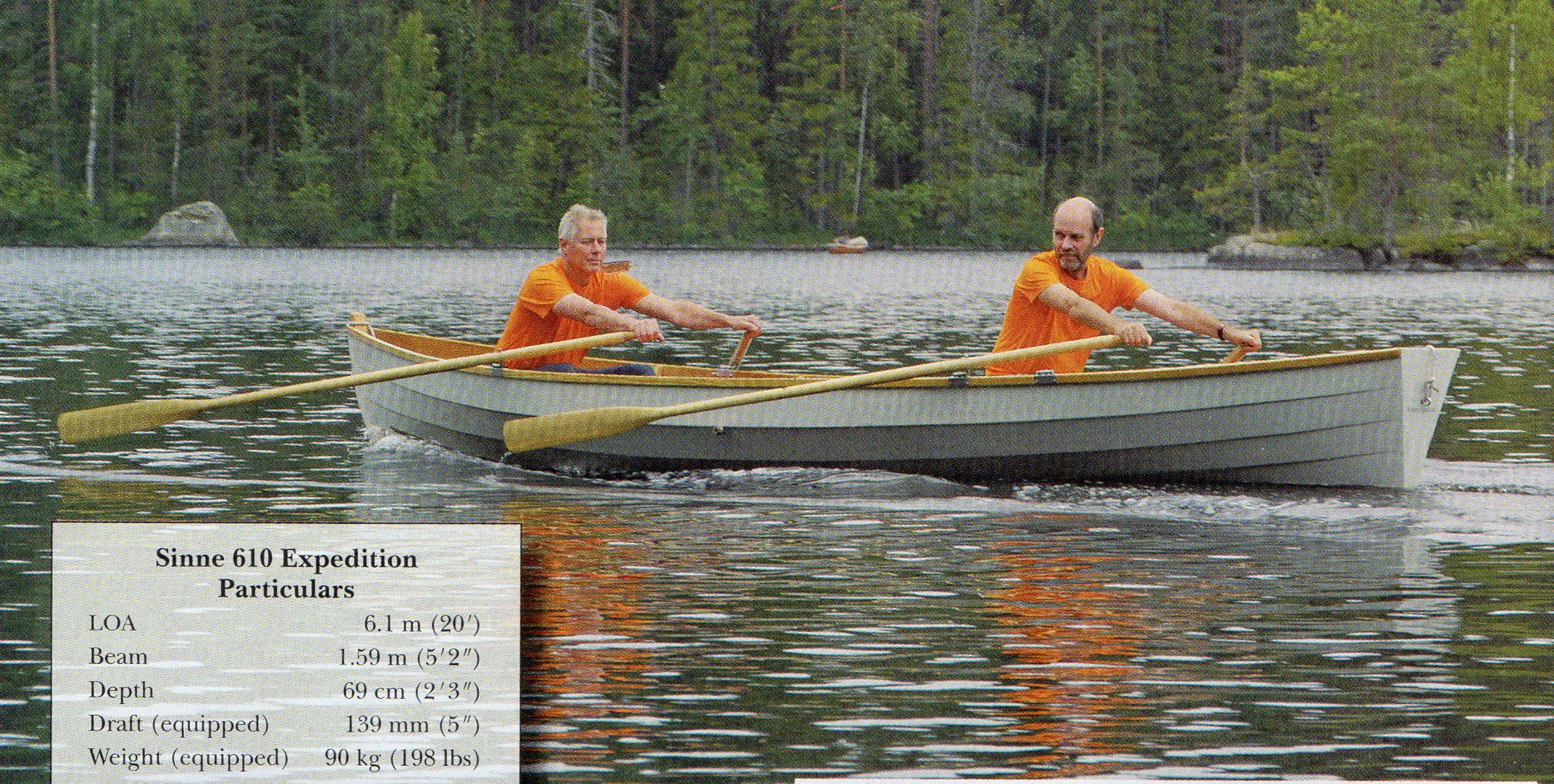 Kevyttä venettä on helppo soutaa joko yksin tai kaksin ja se menee kovaa. Veneen tekijät näyttävät mallia. Foto: WBM