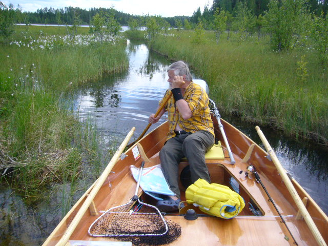 Melankoliaa kaislikossa. Tämä menee melomalla kapeistakin paikoista. Veneen leveys on vain 159 cm ja uppouma 5 tuumaa. Foto P.P.