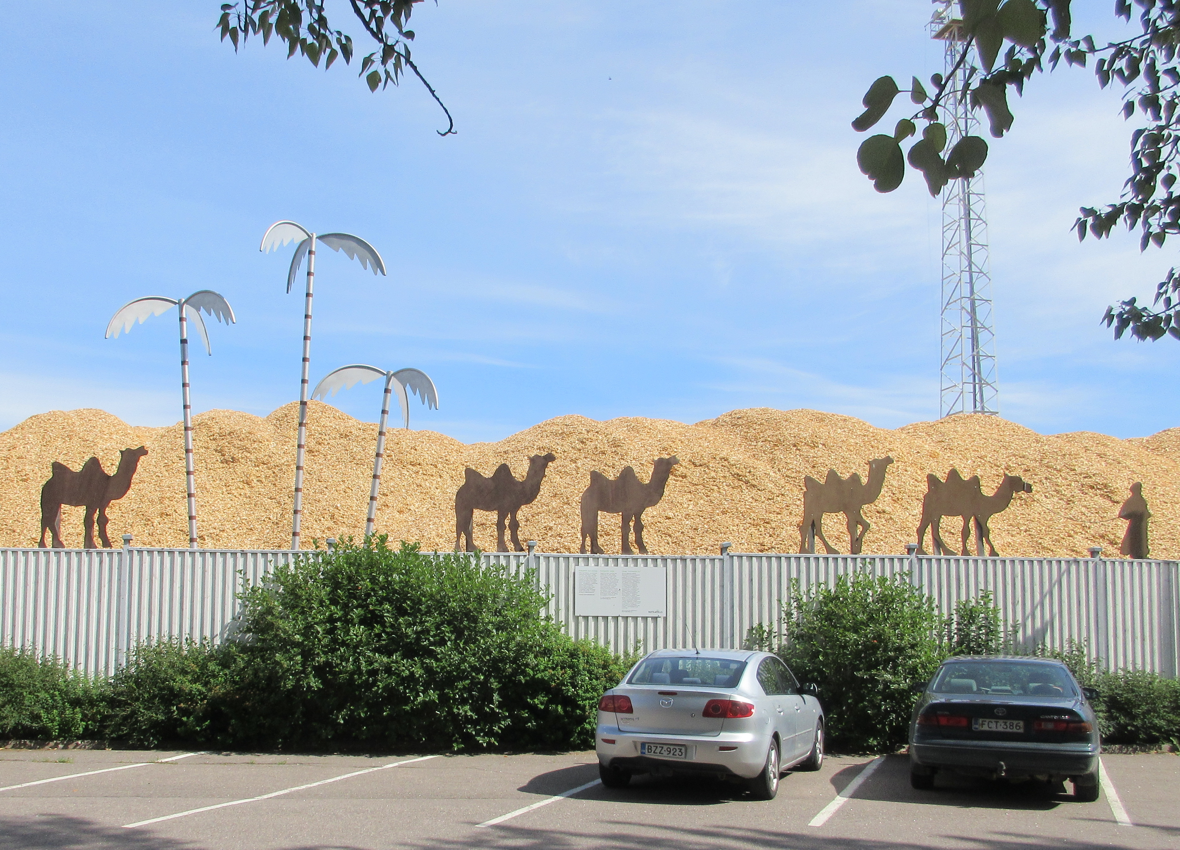 Kotkamillsin suuren tehdasalueen puruvaraston aita kaupungin keskustan tuntumassa lähellä Sapokan rantaa.