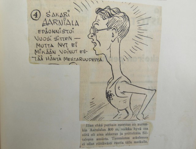 Urheilupilapiirtäjä nimimerkki ”Tiikeri” piirsi kuvan seuraavan päivän lehteen 30-luvulla urheilu-uran aloittaneesta median suosikista, jota ulkonäkönsä perusteella nimitettiin Suomen ”Eastmaniksi” amerikkalaisen puolimaileriesikuvan mukaan.