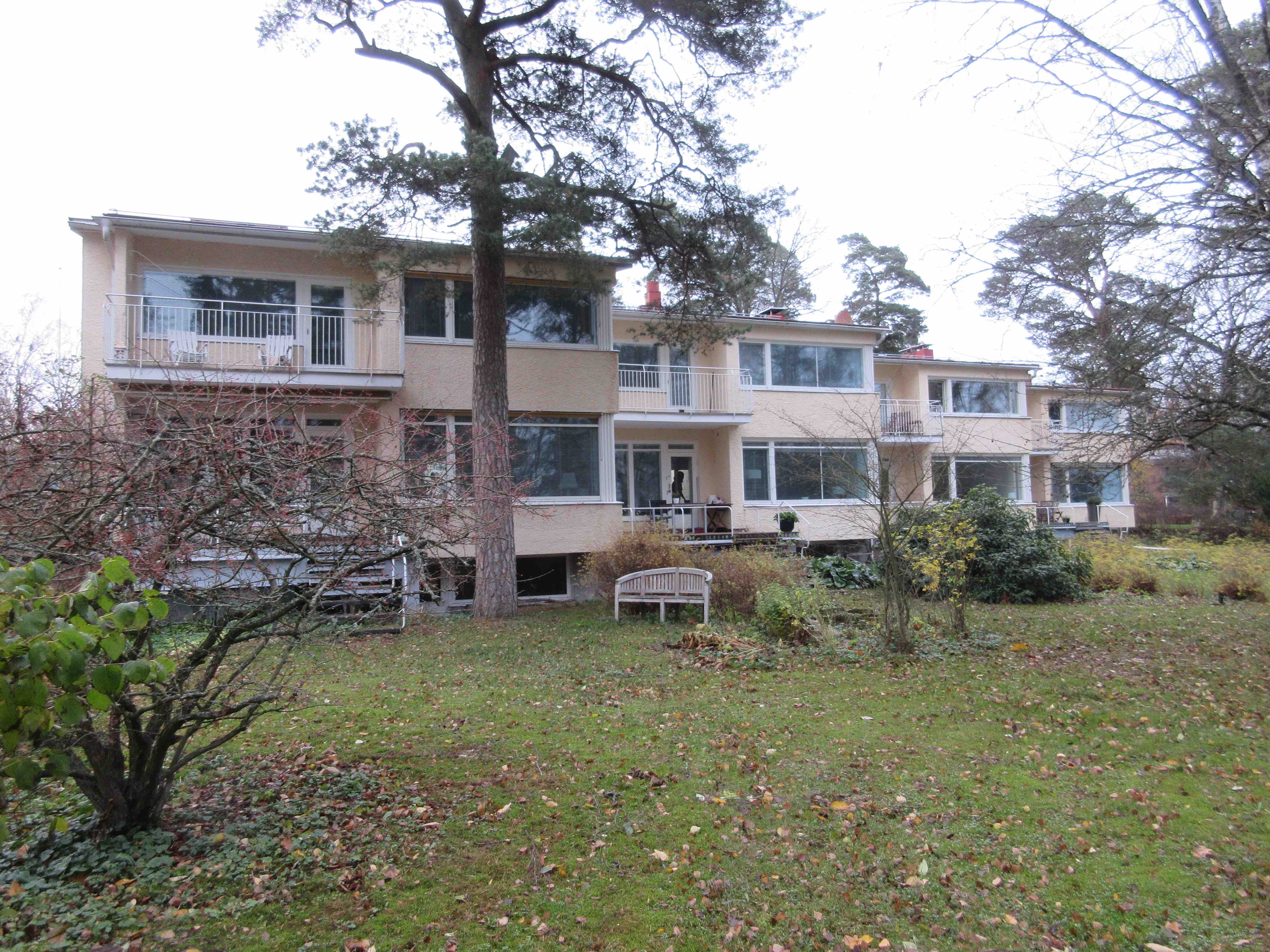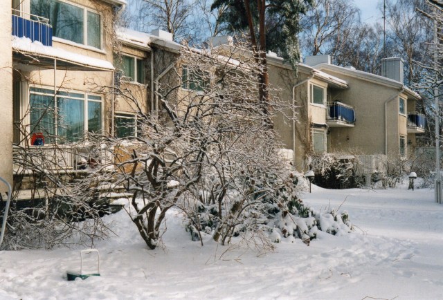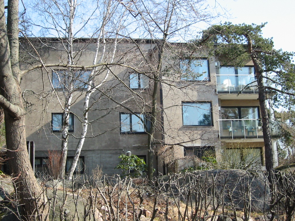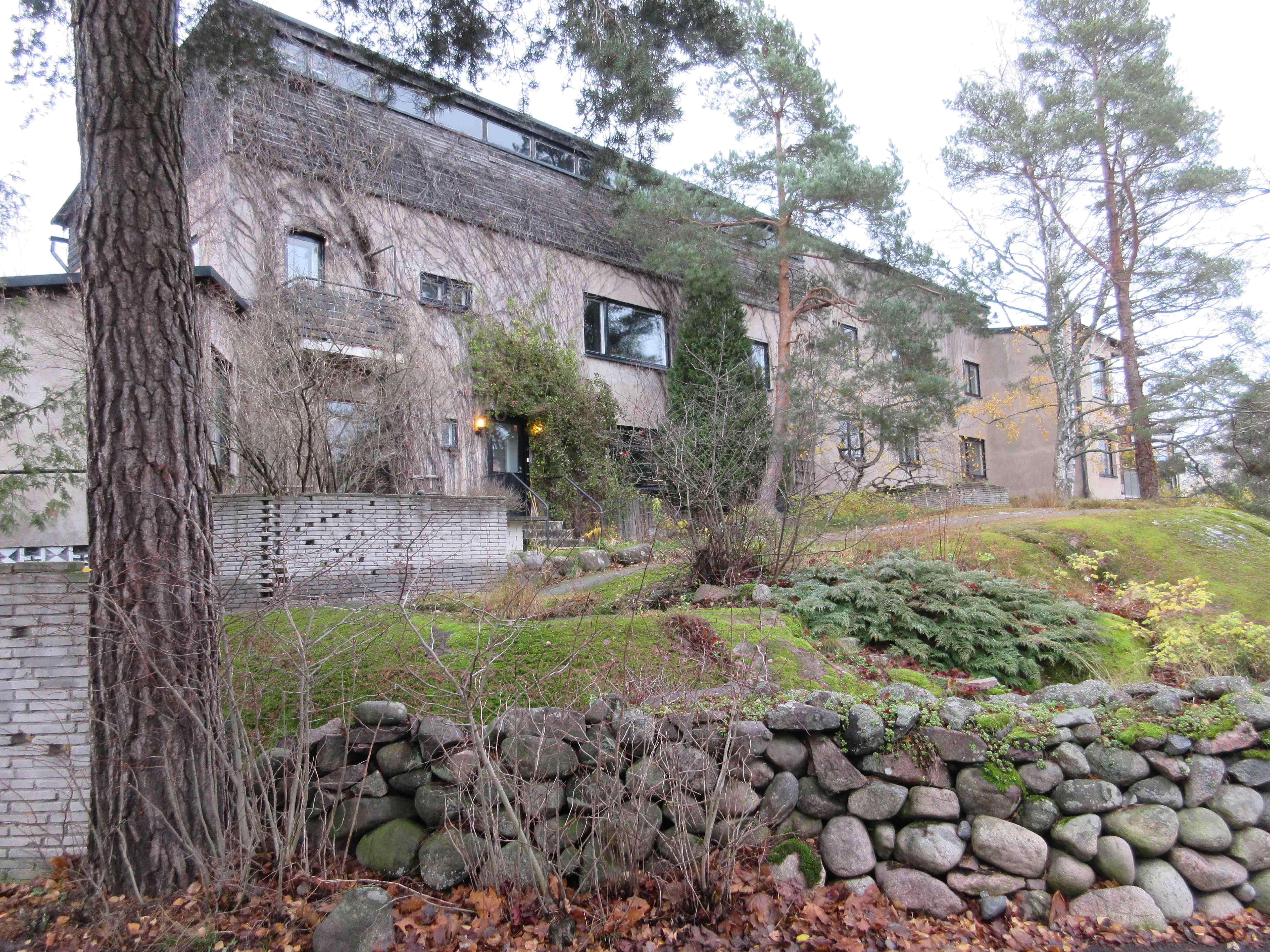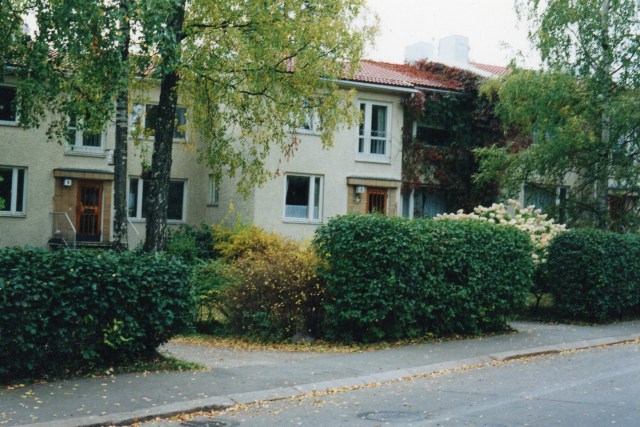 Laajalahdentien akselin toisessa päässä on Eliel Saarisen suunnittelema satavuotias pensionaatti, sittemmin kadettikoulu, ilmavoiminen esikunta, valtion koulutuskekus ja Munkkiniemen koulutustalo. Vuosi sitten valtio myi tämän ”turhan kiinteistön” yhtiölle nimeltä Aalto ympäristökeskus, joka aikoo toteuttaa valtavaan linnaan 44 asuntoa. Niitä asuntoja menen kyllä katsomaan, en ostaakseni, mutta nähdäkseni millä tavalla vanha täysihoitola on jälleen muutettu asuinkäyttöön. Tässä talossa olin aikanaan itsekin kolkkapoikapartiolaisena 70 vuotta sitten.