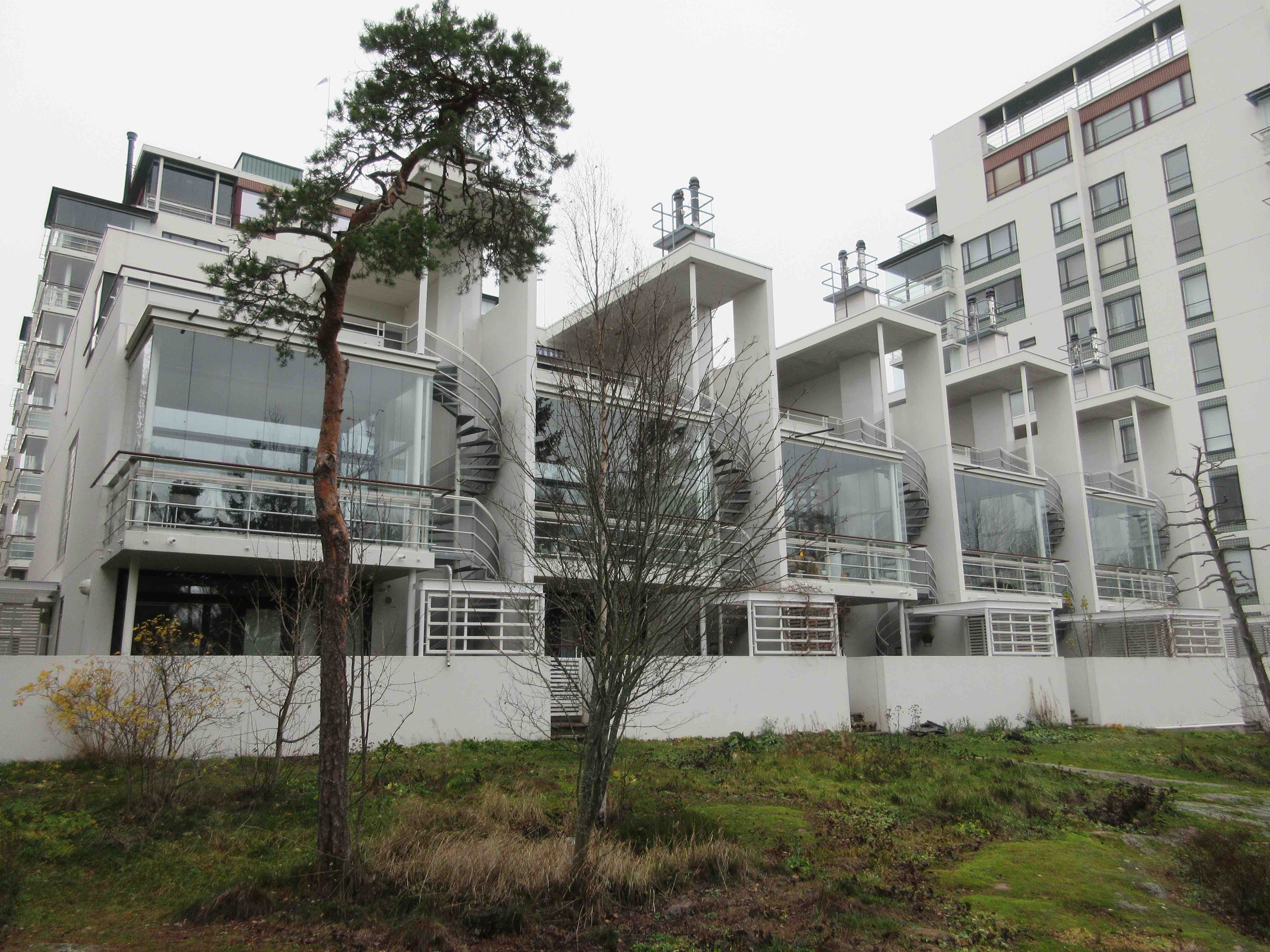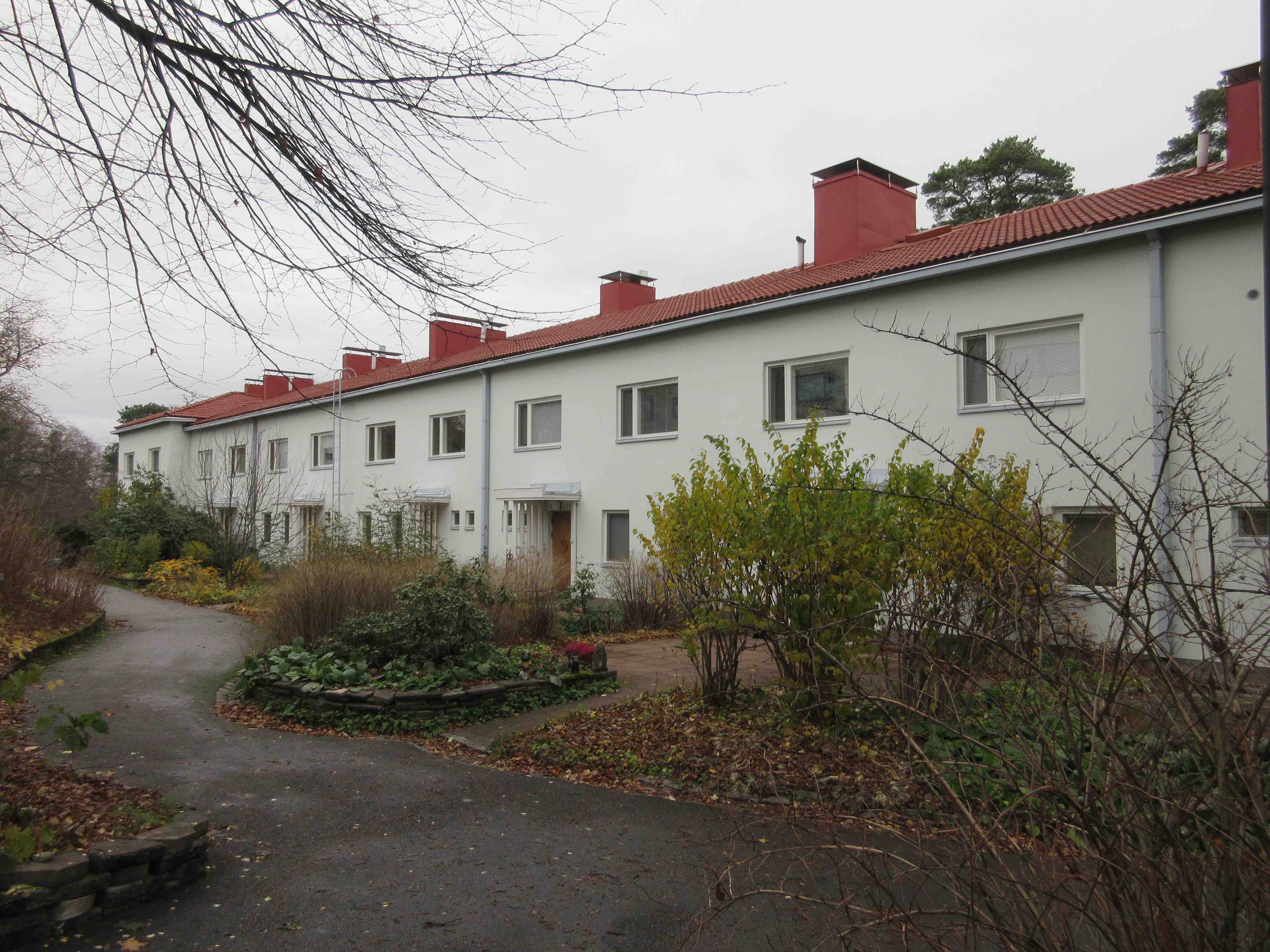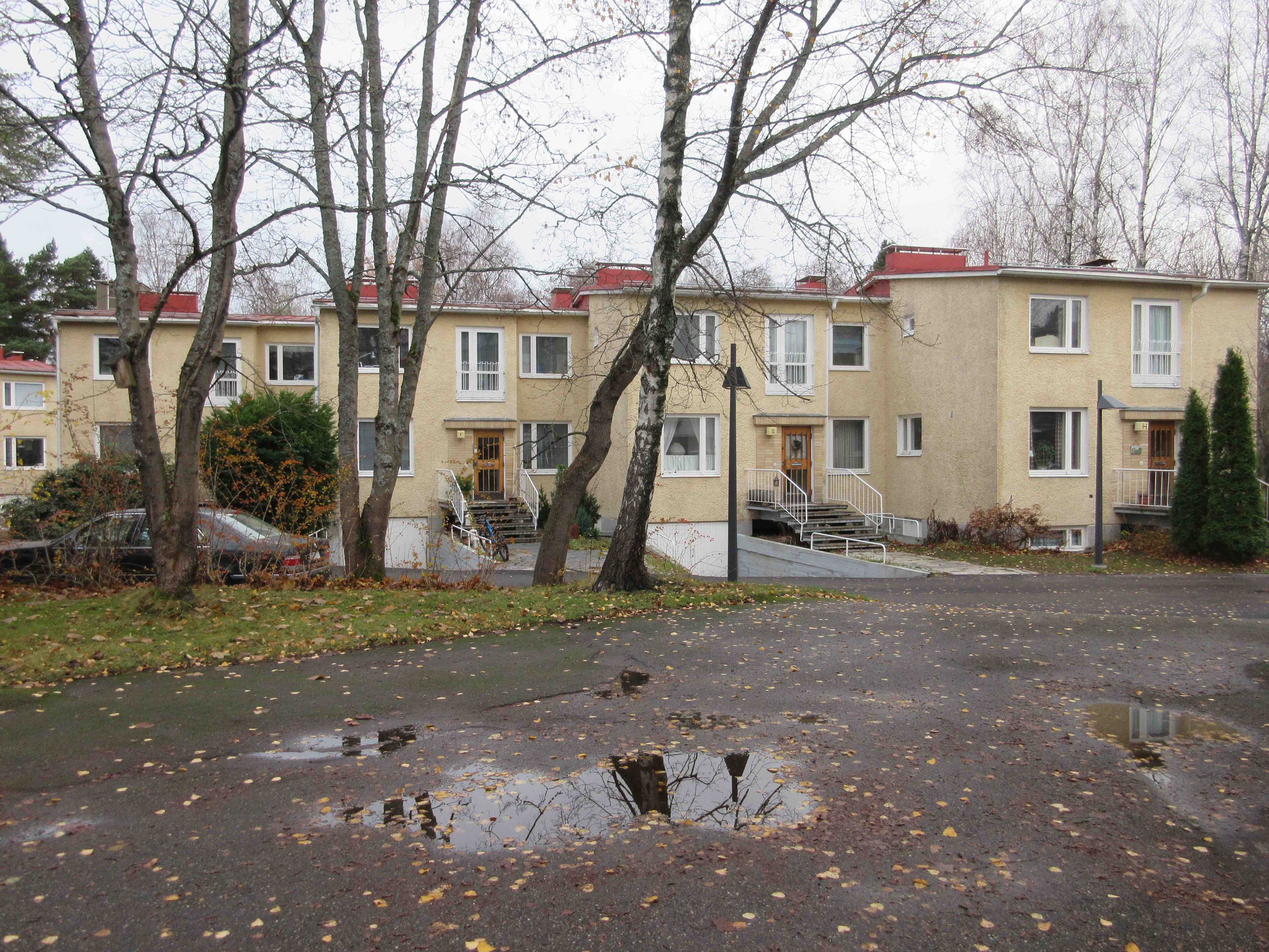 Laajalahdentien akselin toisessa päässä on Eliel Saarisen suunnittelema satavuotias pensionaatti, sittemmin kadettikoulu, ilmavoiminen esikunta, valtion koulutuskekus ja Munkkiniemen koulutustalo. Vuosi sitten valtio myi tämän ”turhan kiinteistön” yhtiölle nimeltä Aalto ympäristökeskus, joka aikoo toteuttaa valtavaan linnaan 44 asuntoa. Niitä asuntoja menen kyllä katsomaan, en ostaakseni, mutta nähdäkseni millä tavalla vanha täysihoitola on jälleen muutettu asuinkäyttöön. Tässä talossa olin aikanaan itsekin kolkkapoikapartiolaisena 70 vuotta sitten.